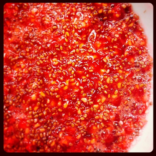This chia seed pudding is very simple and can be prepared in a few minutes for later to enjoy. Unless you are grossed out by their consistency, this pudding is an absolute taste pleaser. You can substitute the honey and vanilla with 1/2 cup shredded coconut which is lightly toasted, particularly if you are not using coconut milk for the pudding. The picture actually used crushed raspberries… You really can’t go wrong…